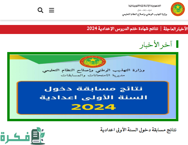 • ادخل إلى الموقع الإلكتروني الرسمي التابع إلى وزارة التهذيب الوطني والإصلاح التعليمي في موريتانيا من خلال الضغط على هذا الرابط.