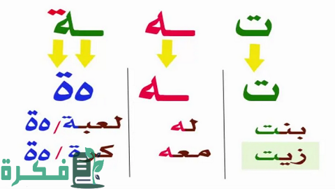 أمثلة على التاء المفتوحة والتاء المربوطة والهاء
