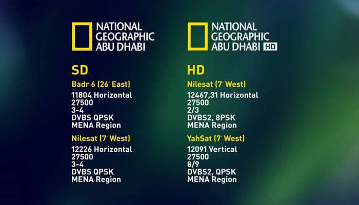 تعتبر قناة ناشيونال جيوغرافيك أبو ظبي من القنوات ذات الأهمية الكبيرة في الشرق الأوسط والعالم العربي يمكن جعل الكثيرين يبحثون عنها وعن التردد الخاص بها بالجودة العادية SD حيث يأتي ترددها كالتالي: