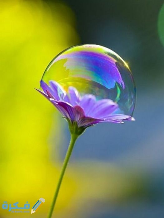 هذا الشكل فهو مميز جدا عبارة عن فكها سقطت على ورده من اللون البنفسجي ليتكون عليها ألوان قوس قزح المختلفه الصورة ممتعه جدا و مريحه للعين .