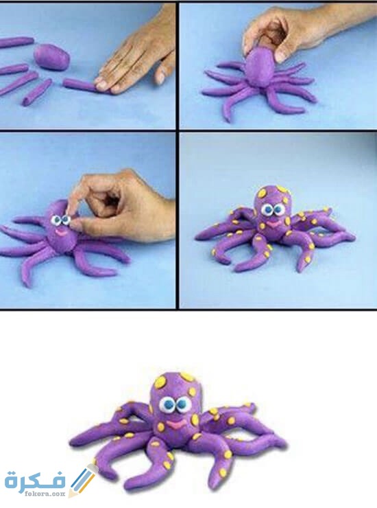 يعتبر الأخطبوط واحد من الحيوانات المميزة جدا والتي تكون سهَلْة في التصميم ويمكن تصميمها بسهولة من قبل الصلصال ومن الاطفال هذا شكل رائع جدا ومميز.