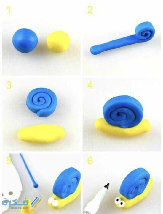 هذه الصورة رائعة جدا لتصميم عبارة عن حلزون تم استخدام قطعة من الصلصال واحدة من اللون الأصفر والأخرى من اللون الازرق بتصميم هذا الشكل كما هو موضح بالصورة تعتبر واحدة من الأشياء التي تجعل الطفل قادر على تشغيل قدراته الذهنية والعقلية أيضا وبالتالي تساعد بدرجة كبير على نمو الطفل بشكل طبيعي.