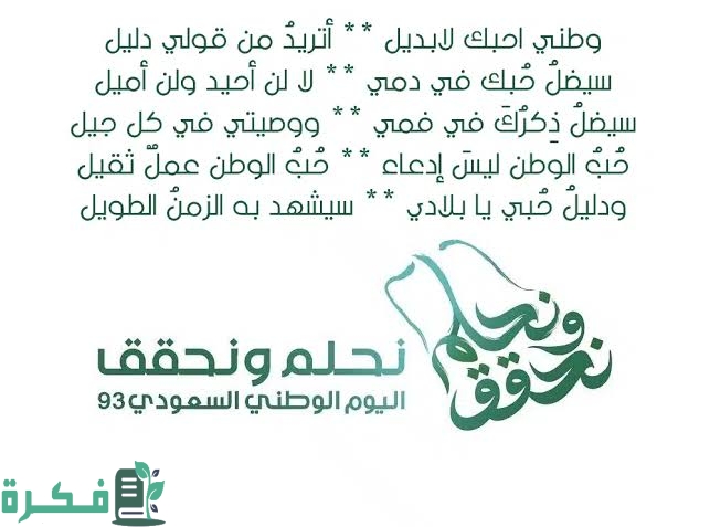 • أن كان هذا الشعار يعبر عن شيئا فهو يعبر عن الملحمة الوطنية التي حققتها المملكة عبر سنوات طويلة من الكذب والعمل الى أن وصلت الى ما عليه الان ويأتي شعار اليوم الوطني السعودي 93 كالتالي: