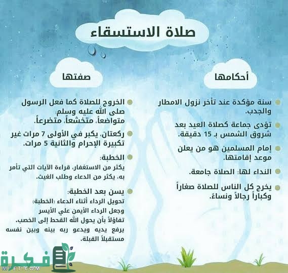 كيفية صلاة الاستسقاء وشروطها من خلال موقع فكرة، لا يعرف الكثير من المسلمين عن صلاة الاستسقاء وعن شروطها وعن اجازتها للنساء من عدمه وما هي الصلاة ومتى يمكن أن يصليها المسلمون وما أهميتها وفائدتها لذا سنقدم لكم اليوم شرحا تفصيليا عن صلاة الاستسقاء وعن كيفية أدائها وعن شروطها وعن كل ما يخص هذه الصلاة في السطور القادمة فتابعونا.