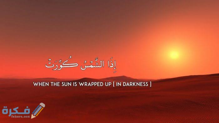 - ان الاعجاز العلمي في سورة التكوير في قول الله سبحانه وتعالى {إِذَا الشَّمْسُ كُوِّرَتْ وَإِذَا النُّجُومُ انكَدَرَتْ وَإِذَا الْجِبَالُ سُيِّرَتْ وَإِذَا الْعِشَارُ عُطِّلَتْ وَإِذَا الْوُحُوشُ حُشِرَتْ وَإِذَا الْبِحَارُ سُجِّرَتْ}.