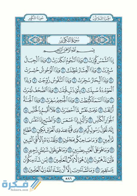 | نزول سورة التكوير | نزلت سورة التكوير في مكة. |