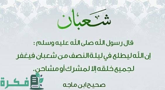 - أن 15 شعبان أو ليلة النصف من شعبان هي ليلة لها مكان عظيمة عند المسلمين وذلك لفضلها الكبير عليها كما أن النبي صلى الله عليه وسلم حث على الاهتمام بالدعاء والعبادة وتكثيف الأعمال الصالحة في تلك الليلة فهي ليلة رفع الأعمال إلى الله سبحانه وتعالى كان النبي صلى الله عليه وسلم يحث المسلمين على الصيام في تلك الليلة وذلك لأنه كان يحب أن يرفع عمله وهو صائم.