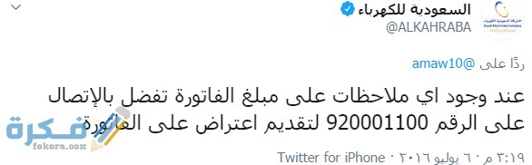 - أيضا يمكن من خلال الحساب الخاص بالشرك على موقع التواصل الاجتماعى تويتر وتسجيل الاعتراض على قيمة الفاتورة من هنا.