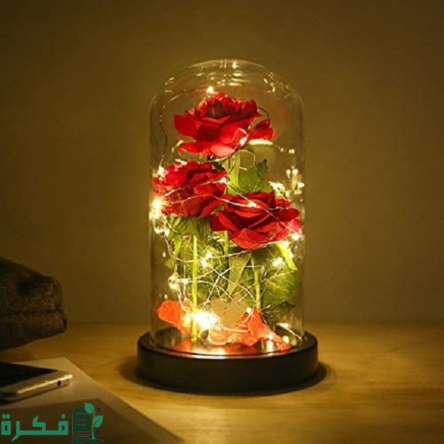 - ورود صناعية في قبة زجاجية، حيث إن الورود وحدها الآن صارت غير محبذة، لكن إن كانت من محبي الورود بشكل عام، فإن هذه فكرة رائعة، حيث تُلف الخيوط الضوئية الجميلة حول الورود، ثم تُغلف بقية زجاجية.