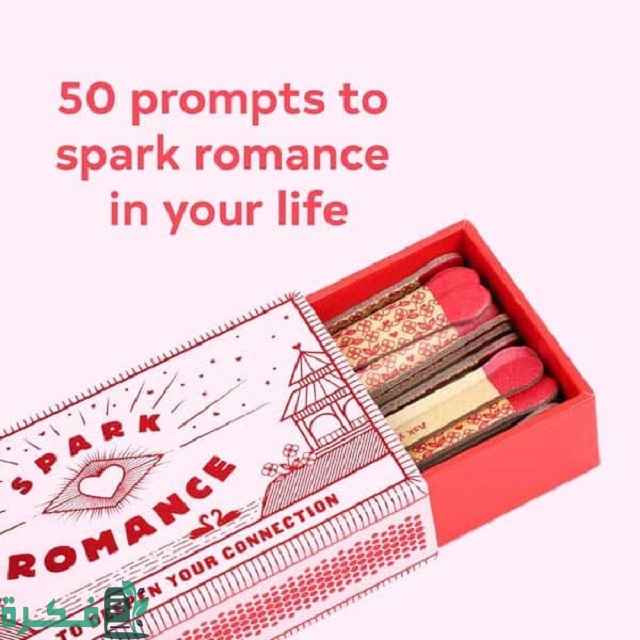 - صندوق Spark Romance، يحتوي على 50 طريقة تعزز الاتصال بينكما بطريقة ذكية، حيث يوجد في الجزء الخلفي من ورقة نشاط مرح، أو تحدي، أو حكمة تساعدكما في تطوير علاقتكما.