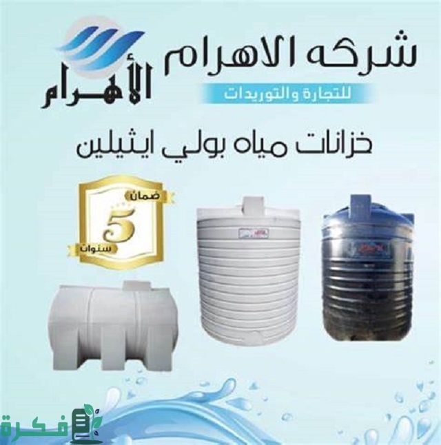 - يبلغ سعر خزان الأهرام سعة 1350 لتر حوالى 1350 جنيه مصري.