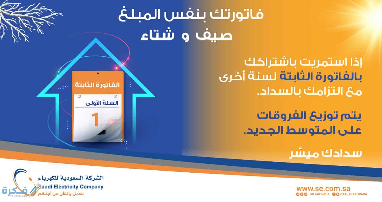 تقدم شركة الكهرباء السعودية خدمة الفاتورة الثابتة لعملائها، ويوجد في هذه الخدمة الكثير من المميزات المختلفة التي يتمتع بها المشترك، والآن سوف نعرض إليكم مميزات خدمة الفاتورة الثابتة،