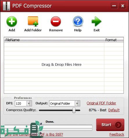 • لا يؤثر استخدام برنامج pdf compressor  على جودة الصور والرسوم البيانية الموجودة داخل الملف المراد ضغطه .