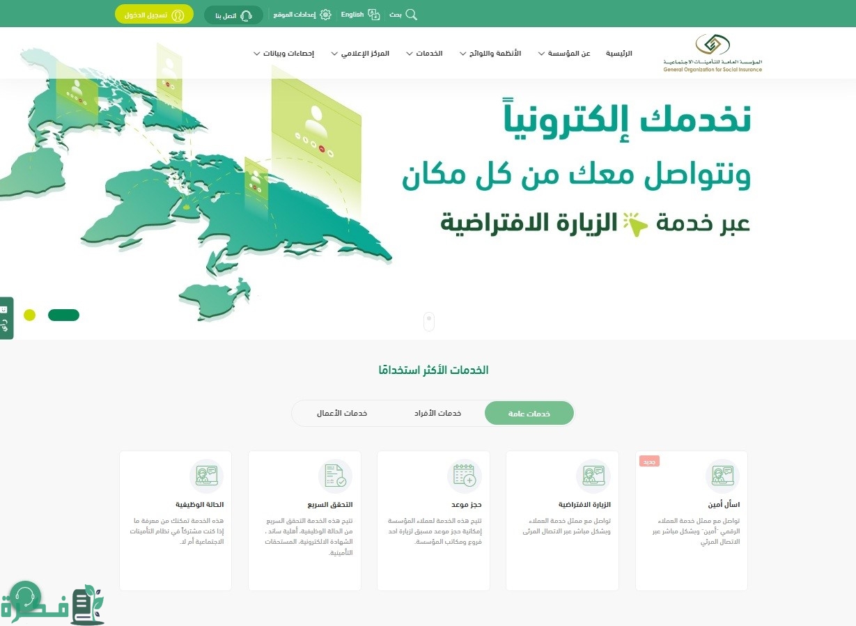 - الدخول إلى الموقع الإلكتروني للمؤسسة العامة للتأمينات الاجتماعية من هنــــــــــــــا.