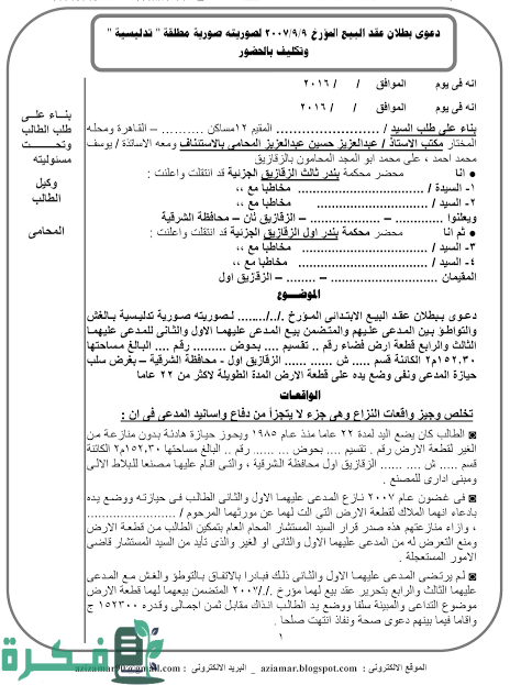 صيغة دعوى بطلان عقد بيع للغش والتدليس