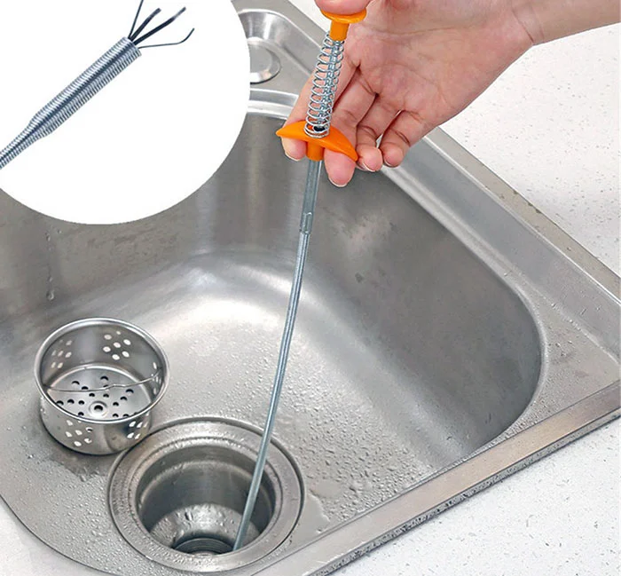 يمكن استخدام سلك التسليك إذا كان متوفر أو يمكن التعويض عنه باستخدام الأطراف الخاصة بالشماعة المعدنية والتي تقوم بسحب الشعر أو المواد العالقة عن طريق