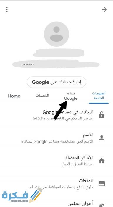 - ثم تقوم منها بأختيار الأعدادات ومن ثم تقوم باختيار مساعد جوجل.