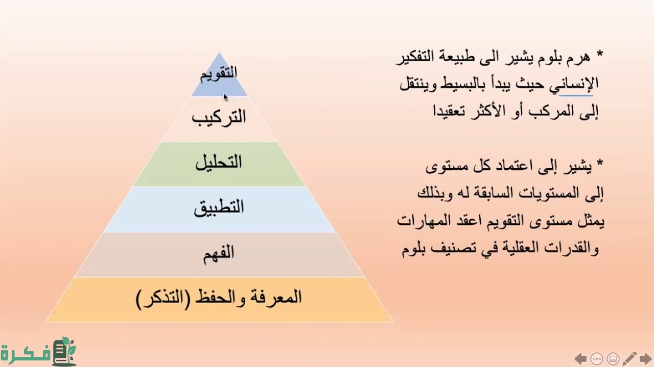 - يساعد تصنيف بلوم فى بناء المهارات المعرفية للطلاب.