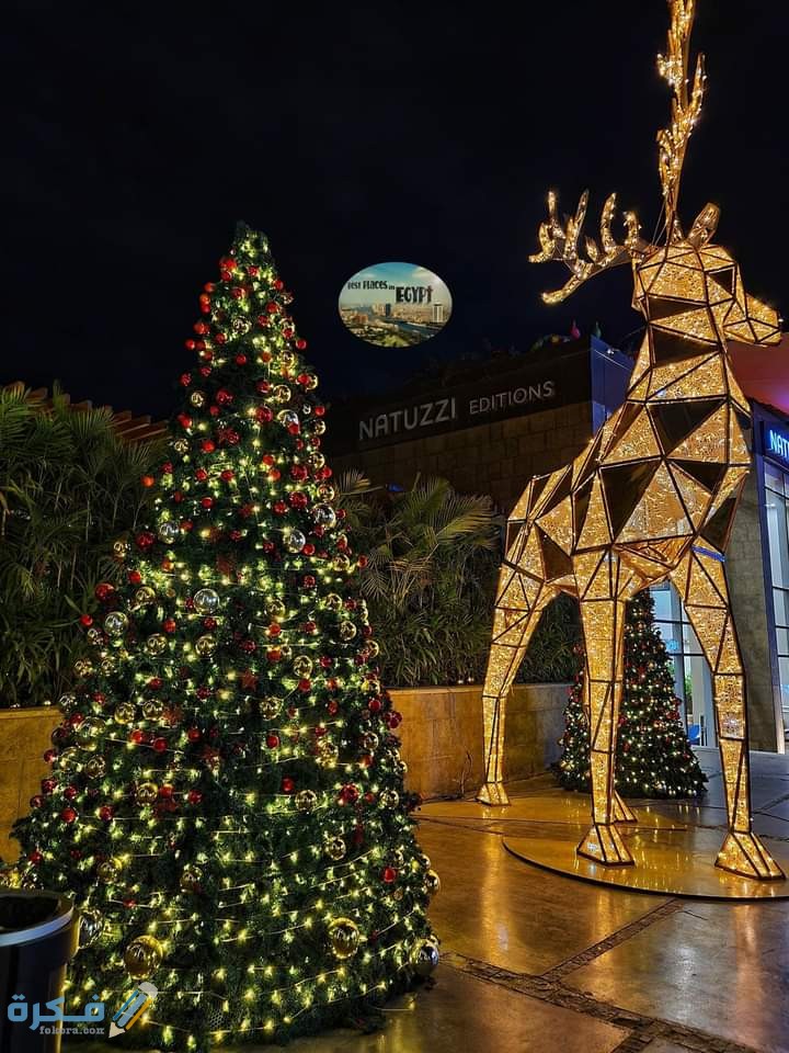 - فقد تزينت بعض شوارع مصر بالزينة وأجواء رأس السنة الاحتفالية، مع انتشار شجرة الكريسماس في مصر في المولات التجارية وبعض المحلات.