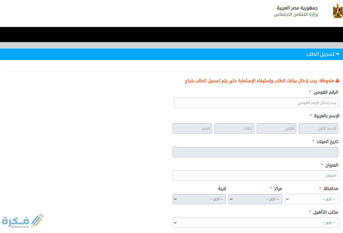 - في البداية يتعين عليك الذهاب الى الموقع الخاص بـ وزارة التضامن الاجتماعي المصرية من خلال هذا الرابط.