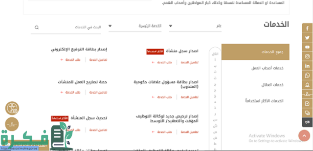 - الضغط على “الخدمات”.