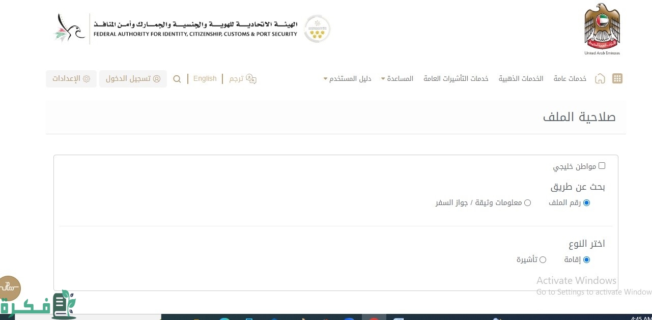 - اختيار نوع الملف عن طريق الرقم الموحد الإماراتي أو رقم الملف أو رقم الهوية، وإدخال الرقم في الخانة المخصصة له.