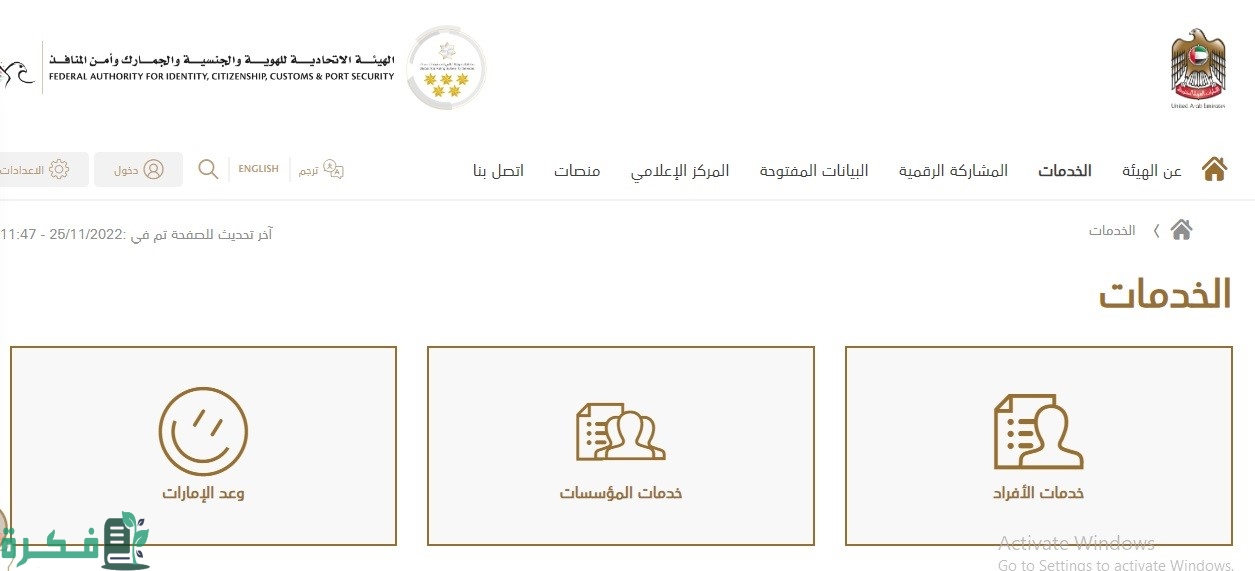 - تجديد بطاقة الهوية عن طريق بوابة الهيئة الاتحادية للهوية والجنسية.