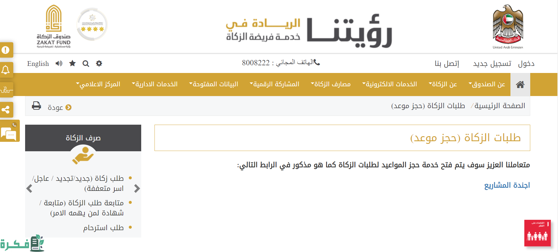 - للتواصل مع صندوق الزكاة من خلال الهاتف المجاني على الرقم 8008222.