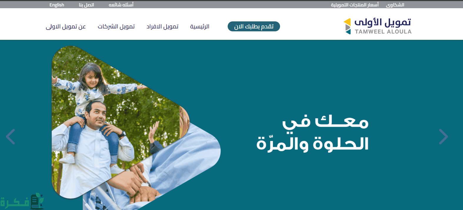 - في البداية عليك التوجه إلى الموقع الإلكتروني الرسمي الخاص بتمويل الأولى من خلال الضغط على هذا الرابط.