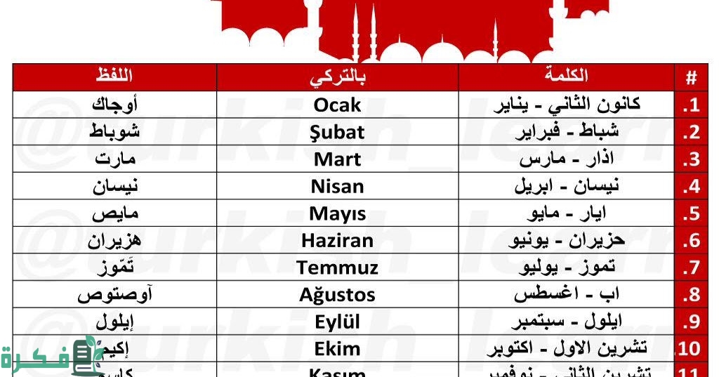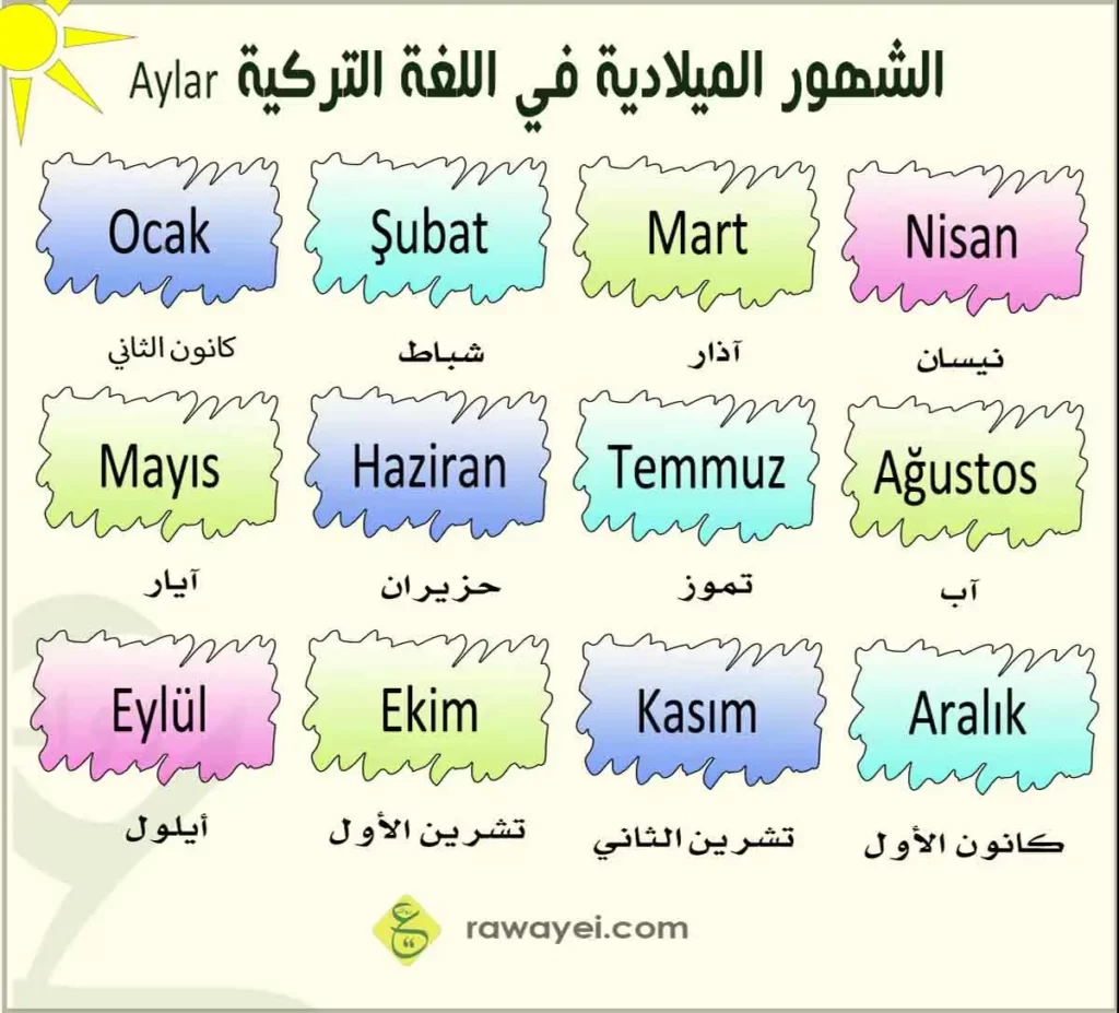 أسماء الأشهر الميلادية بالتركي مع الترجمة