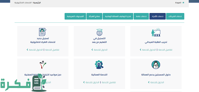 - الضغط على “خدمات العمالة الوافدة” من القائمة يمين الشاشة.