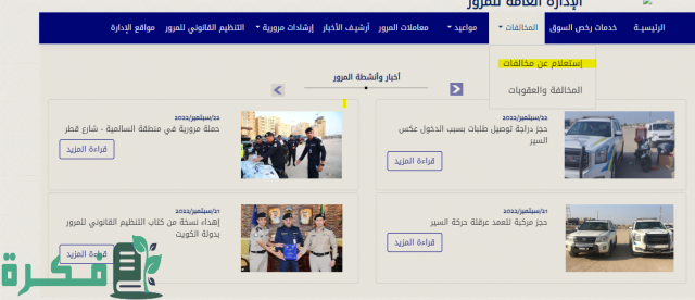 - اختر من القائمة “الاستعلام عن المخالفات”.