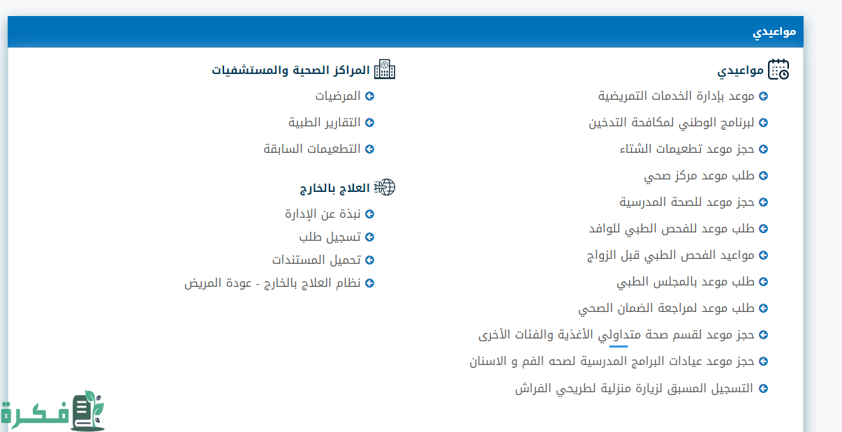 - حجز موعد مسبق من خلال موقع وزارة الصحة