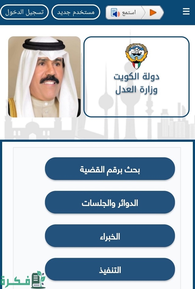 - ادخل إلى الموقع الإلكتروني الرسمي الخاص بوزارة العدل الكويتية من هنا.