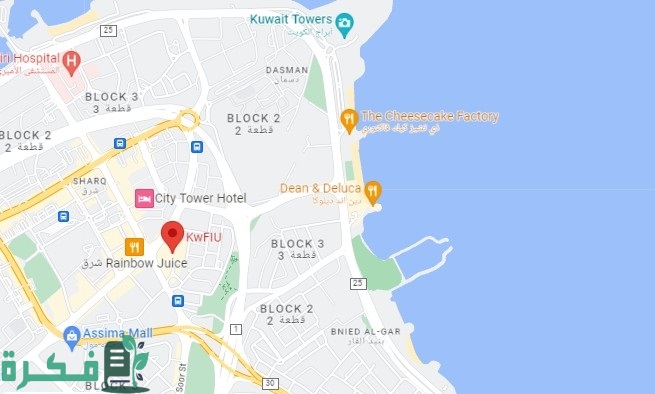 1. النفاذ عبر موقع وحدة التحريات المالية الكويتية على جوجل ماب “من هنا“.