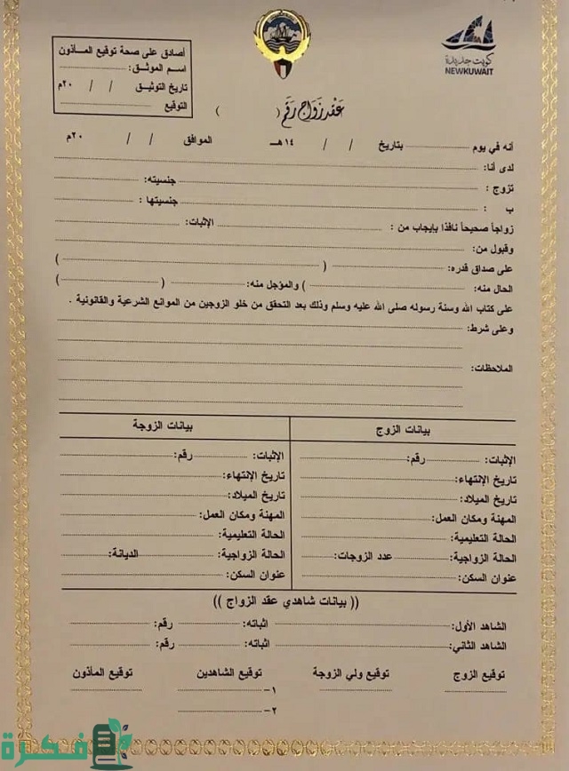 نموذج عقد زواج كويتي من وزارة العدل pdf