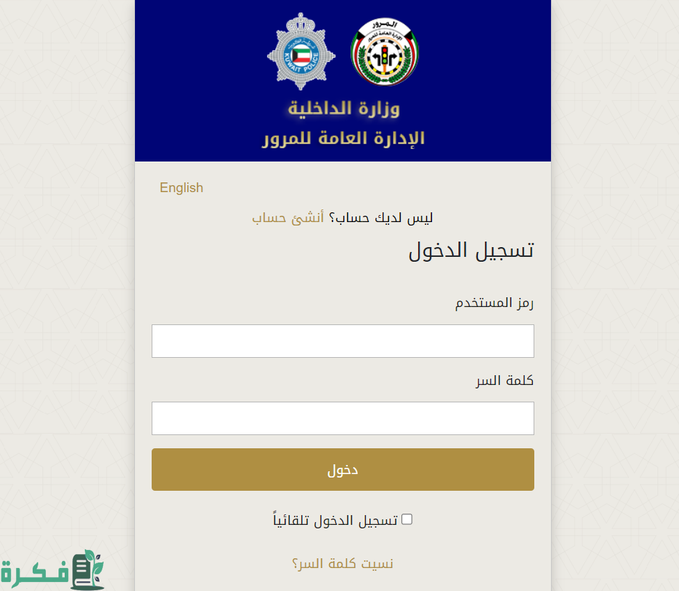 - الدخول الى الادارة العامة للمرور من موقع وزارة الداخلية الكويتي من هنا.