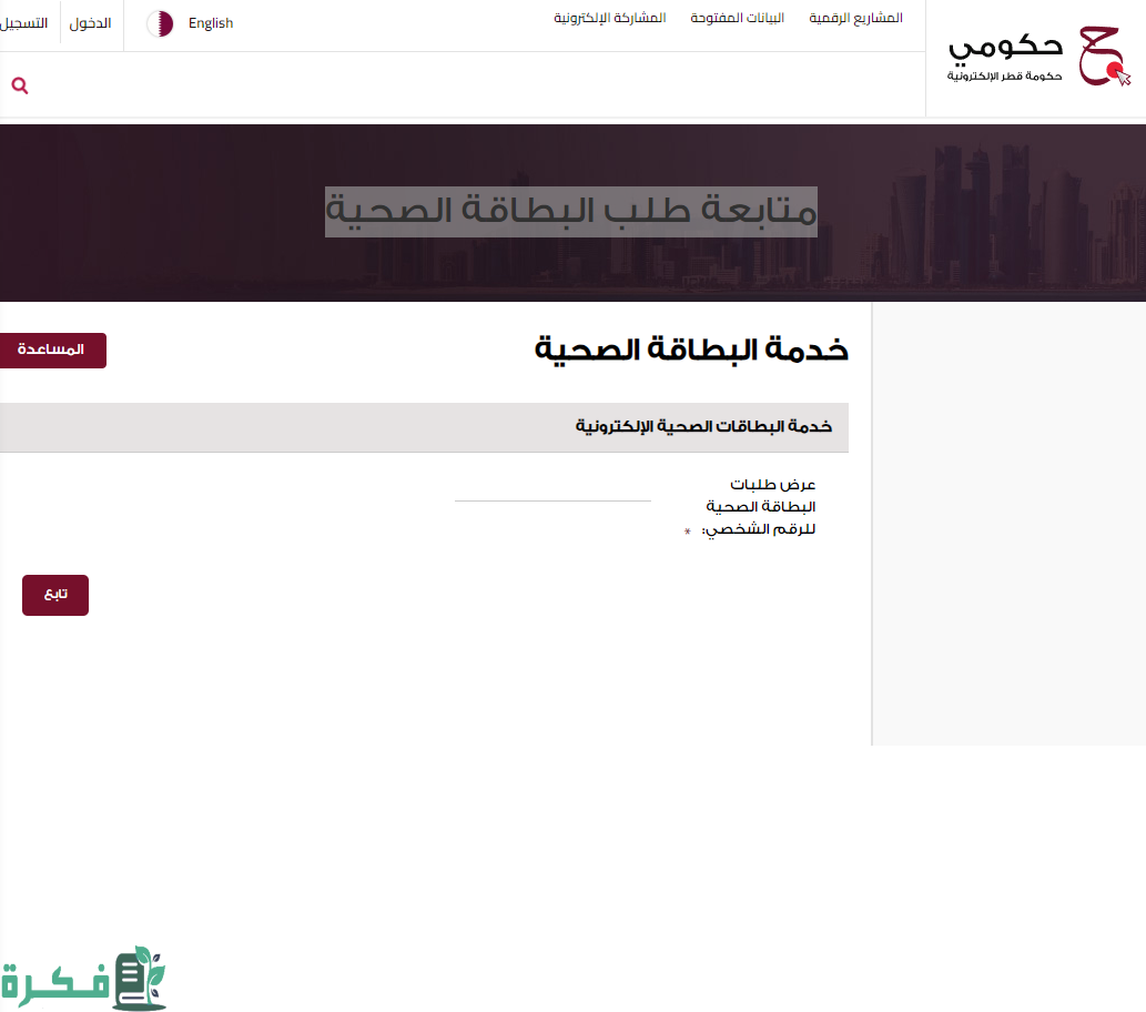 - الدخول إلى خدمة البطاقة الصحية في قطر وذلك من خلال النقر على الرابط التالي: ” من هُنا“.
