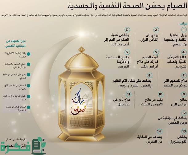• الصيام يساعد في تحسين الحالة المزاجية والتقليل من الشعور بالقلق والاكتئاب.