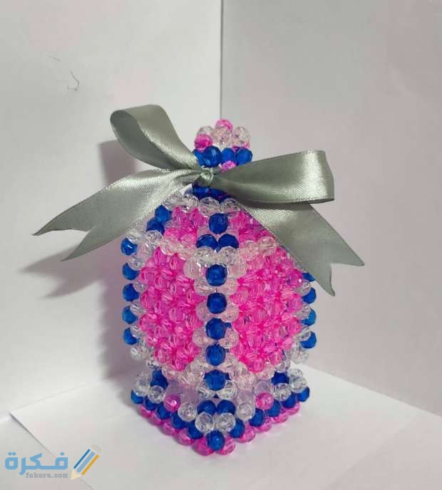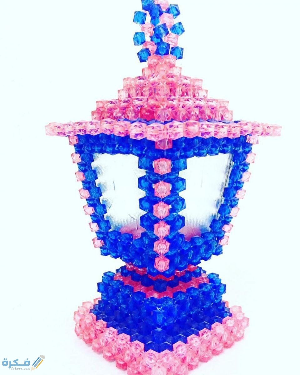 في هذه الصورة فانوس مصنوع من الخرز الملون مع وجود شكل فيونكة في أعلي الفانوس لكي تزيد من شكله الجميل والرائع وهو يعتبر من الأنواع التي يحبها الاطفال لأنها تحتوي على ألوان مبهجة جدا .