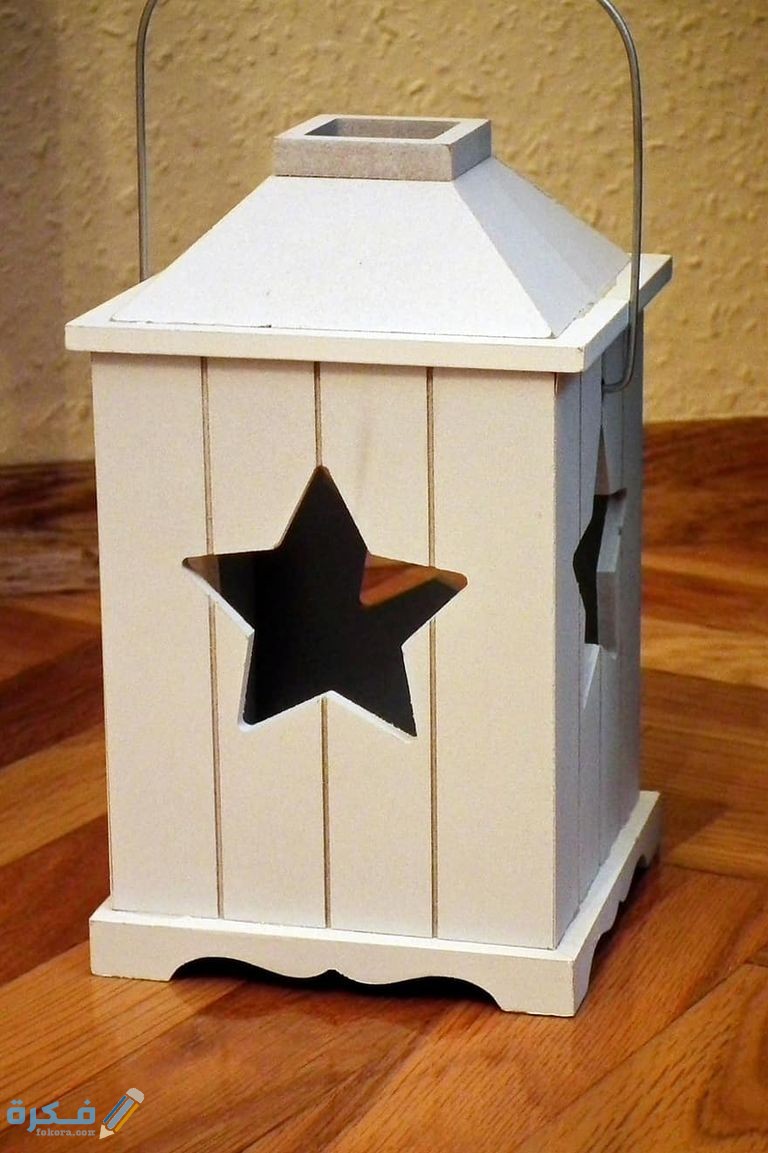 فانوس خشبي مفرغ من المنتصف على شكل نجمه باللون الابيض الهادئ مع إمكانية وضع شمعه أو ضوء في الداخل لتزيد من جمال وروعة الفانوس .