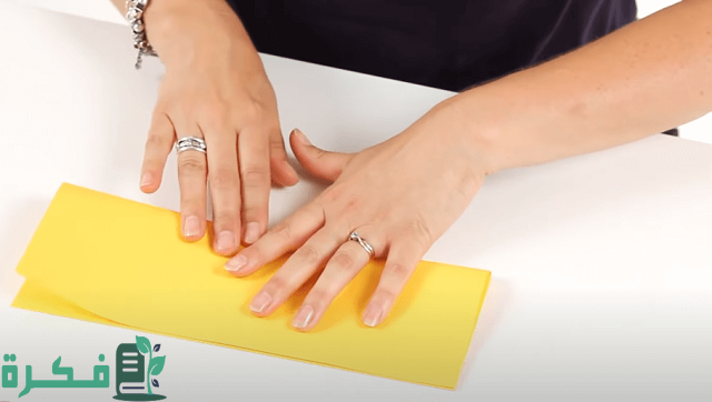 - تُقسم الورقة بالطول للحصول على شكل مربع أو شكل أقرب له.