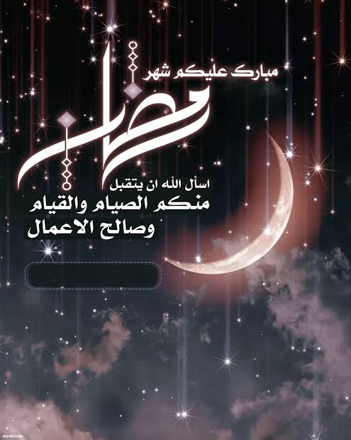 - بمناسبة قدوم شهر رمضان الكريم أرسل أجمل عبارات التهاني لحلول شهر الرحمات، نسأل المولى عز وجل أن يتقبل منا إنه سميع مجيب الدعوات.