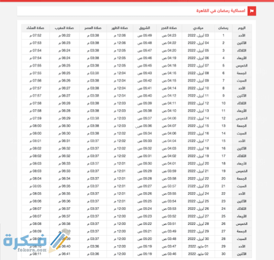 • ويبَحث الكثيرين في مصر عن أمساكية شهر رمضان لعام 2022 والتي تأتي كالتالي :