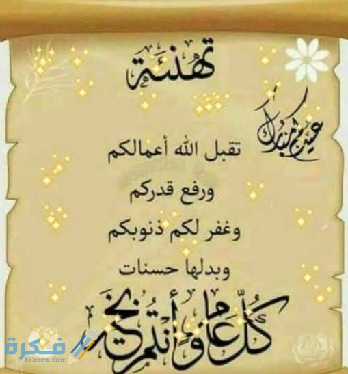 - كل عام و أنتم بخير وصحة وعافية والله يجعل عيدكم فرحة بأعمال قبلت وذنوب محيت ودرجات رفعت ورقاب عتقت.