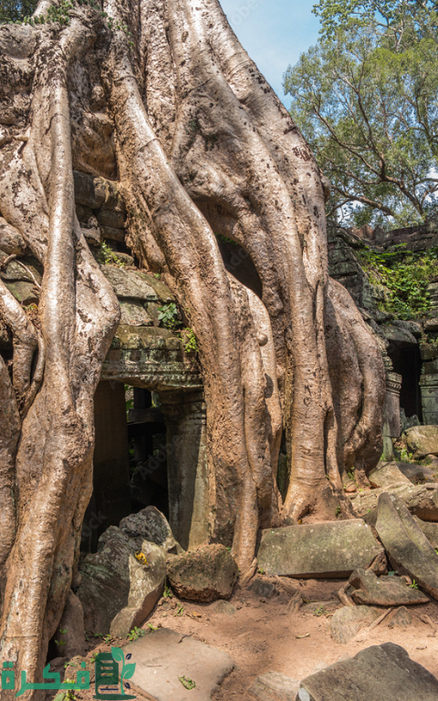 - جذورها ترتفع إلى السماء لتخلق مظلة طبيعية فوق المعبد.