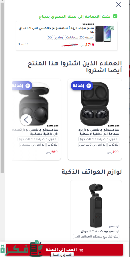 | سامسونج جالكسي اس 21 اف اي 5G | سعة 256 جيجابايت، 8 جيجابايت رام، اكسينوس 2100- | 1,999 |