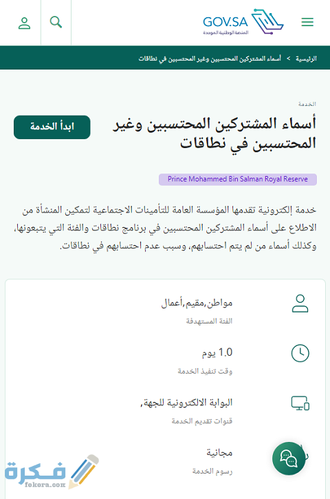 أسماء المشتركين المحتسبين وغير المحتسبين في نطاقات خدمة وفرتها المؤسسة العامة للتأمينات الاجتماعية، ويستطيع القطاع من خلال هذا النظام والمواطن أيضًا معرفة الأسماء التي قد تم حصرها والتي لم يتم حصرها، وسوف نوضح لكم ذلك من خلال موقع فكرة.