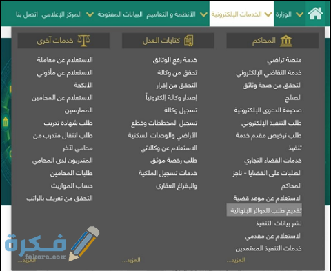 - الذهاب إلى الموقع الإلكتروني الخاص بوزارة العدل السعودية من هنا.