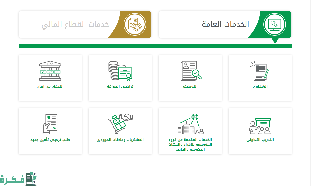 - النقر على الخدمات المقدمة من فروع المؤسسة للأفراد والجهات الحكومية والخاصة.